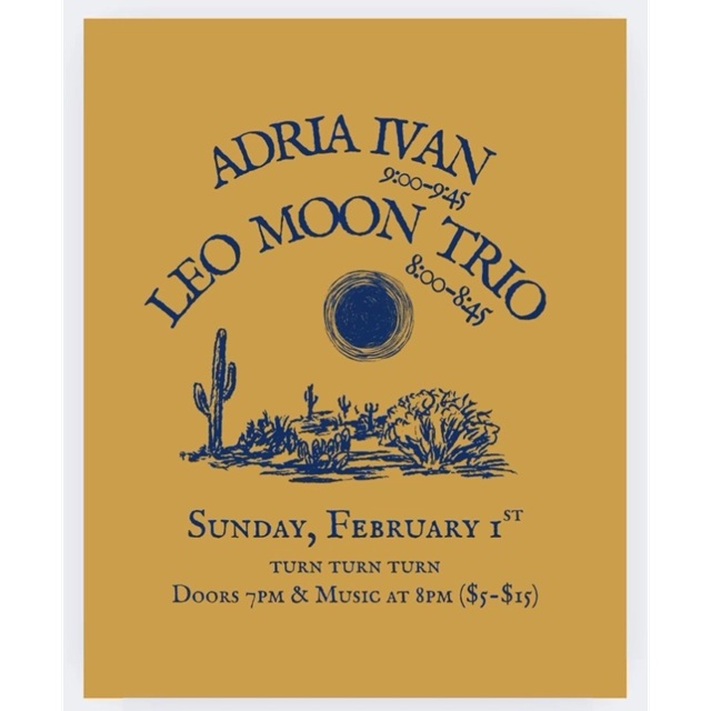 Start/end your week with this real sweet show featuring Adria Ivan, (Sunbathe and a bunch more!), and the Leo Moon Trio, the project of founding member of Blitzen Trapper Brian Adrian Koch. We will have a real good time together!